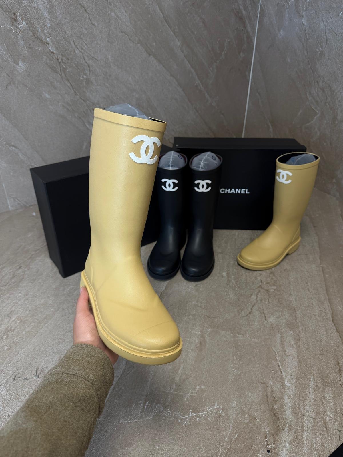 Chanel Classic Rain Boots Beige