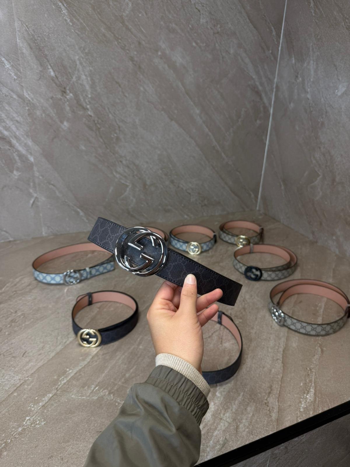 Gucci Blue Riem, Zwarte Logo