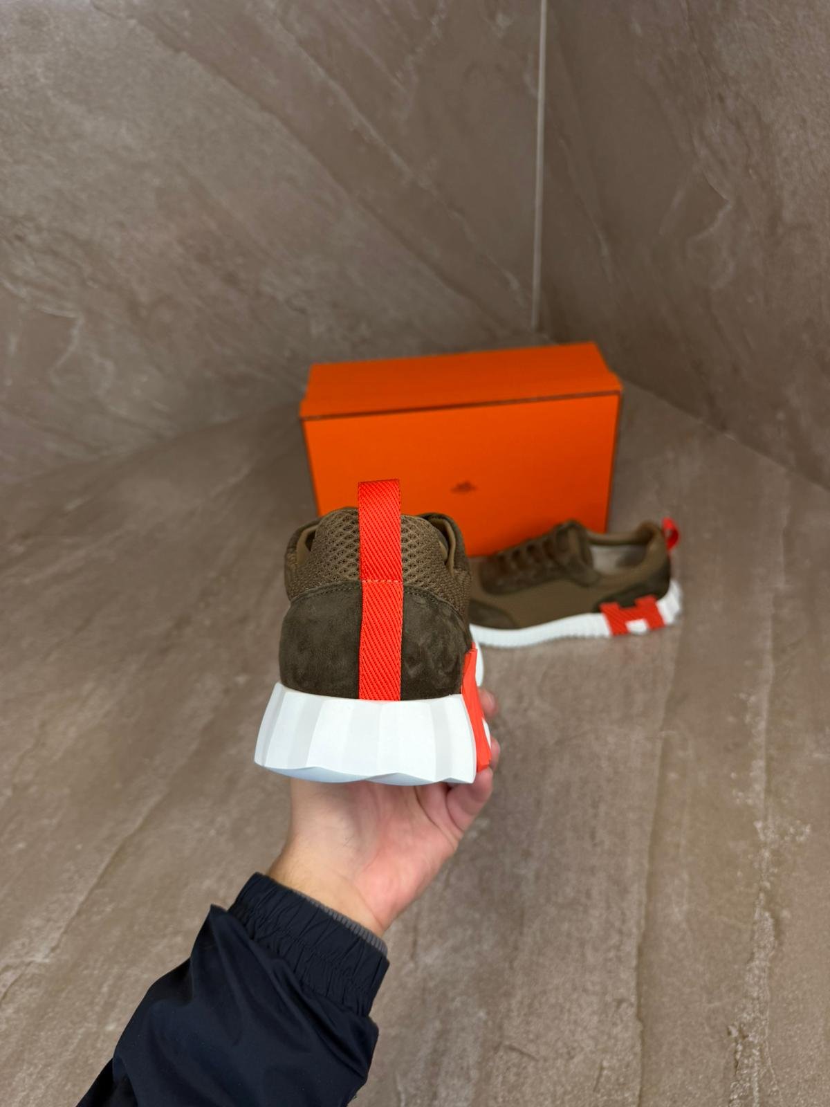 Hermes Bouncing Brown Sneakers, Orange Logo