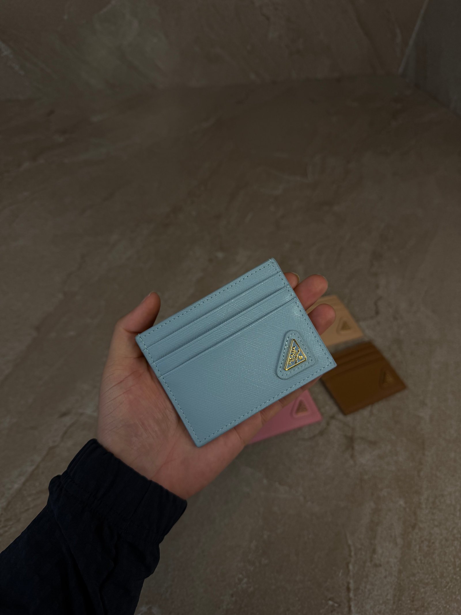 Prada Saffiano Leather Card Holder Light Blue