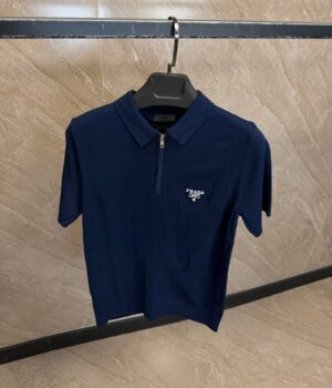 Prada Milano Zipper Polo Navy