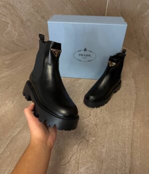 Prada Monolith Black Leather Chelsea Boots